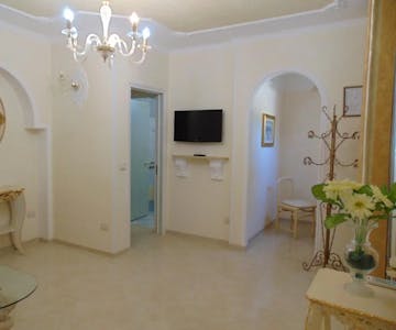 A terrestrial TV is available in all three rooms. The private bathroom is located within the internal hallway that connects the rooms.